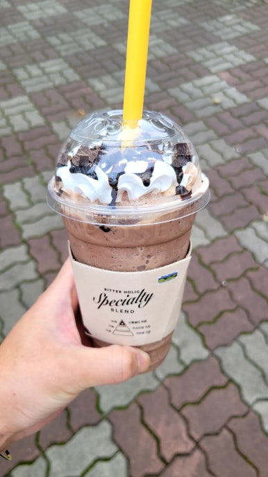리얼초코자바칩프라페를 주문했다. 생각보다 크게 달진 않았고 당도는 적당했다. 물론 내 기준이다. 스타벅스에 비슷한 메뉴인 초코프라푸치노와 비교해도 맛의 차이는 별로 없다. 가성비를 생각하면 충분히 먹을만한 메뉴라고 본다.