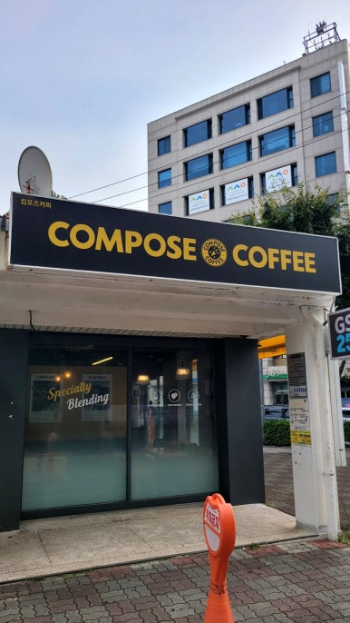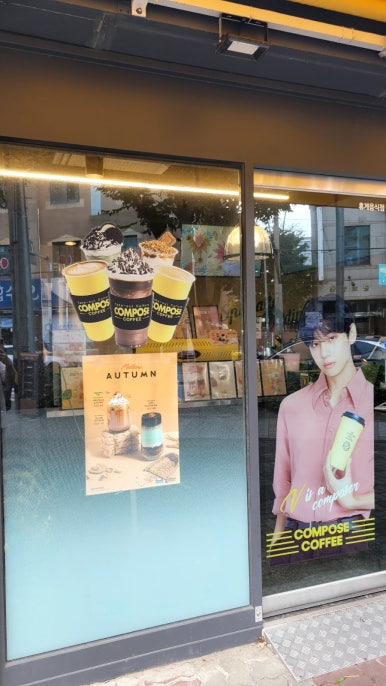 빵집 근처에 있는 컴포즈커피에 들렀다. BTS 방탄소년단 뷔가 여전히 모델이다.
