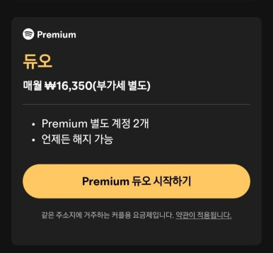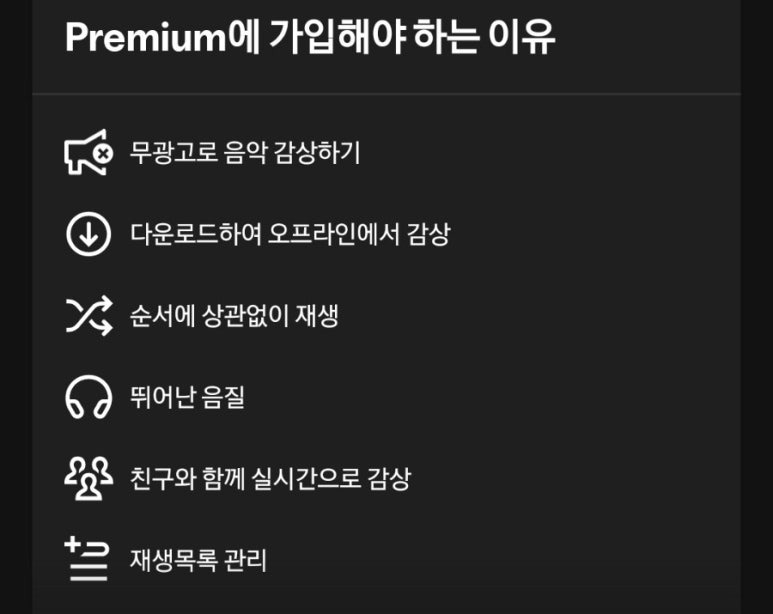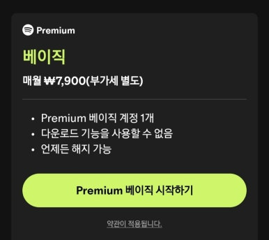 유료 정책은 다음과 같다. 하지만 경쟁사 대비 가격 메리트가 없어 광고 버전을 추천한다. 스포티파이의 셔플 알고리즘 기능은 사용자 취향을 분석해서 꽤 뛰어난 편이다. 강제로 셔플*을 적용하는 광고 버전이라고 해도 들을 만한 것이다.