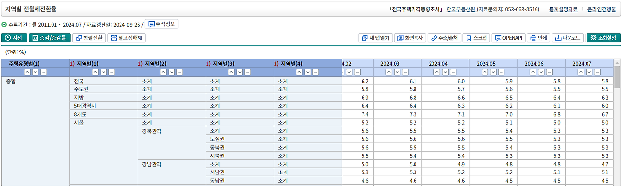 자 이제, 다시 현실로 돌아가자. 이 글의 제목에 적은 투자는 부동산, 유가증권, 지적재산권 등 각종 유무형자산을 이용해 벌어들이는 소득이다. 쉽게 말해 노동소득이 아닌 소득, 불로소득을 말한다. 토마 피케티에 따르면 자본소득을 구하는 공식은 자본주의 역사상 일반적인 채권수익률인 5%로 본다. 이는 임차보증금(전월세) 전환율 개념과 비슷하다. 공교롭게도 2024년 7월 서울 기준 전월세전환율은 5%(전국 5.8%)이다.